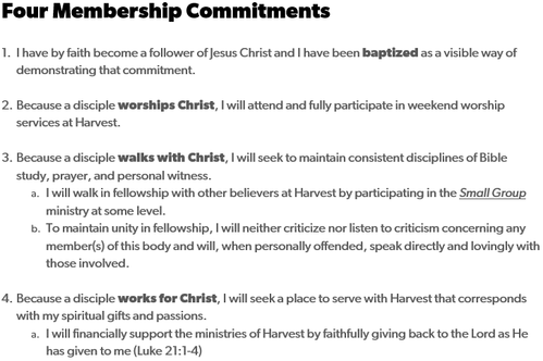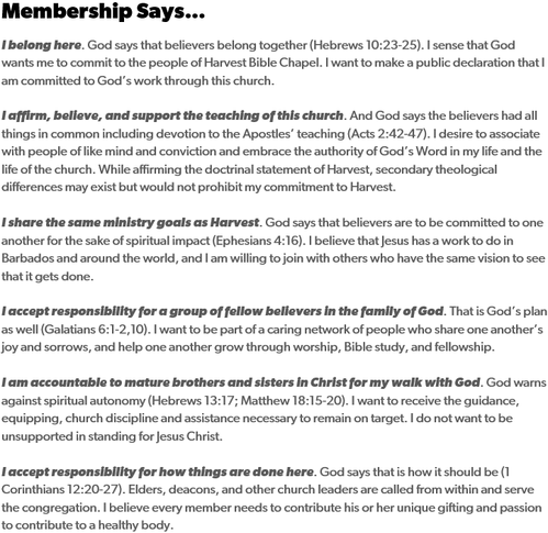 I have read the Mission Statement and Four Pillars of Harvest Bible Chapel.